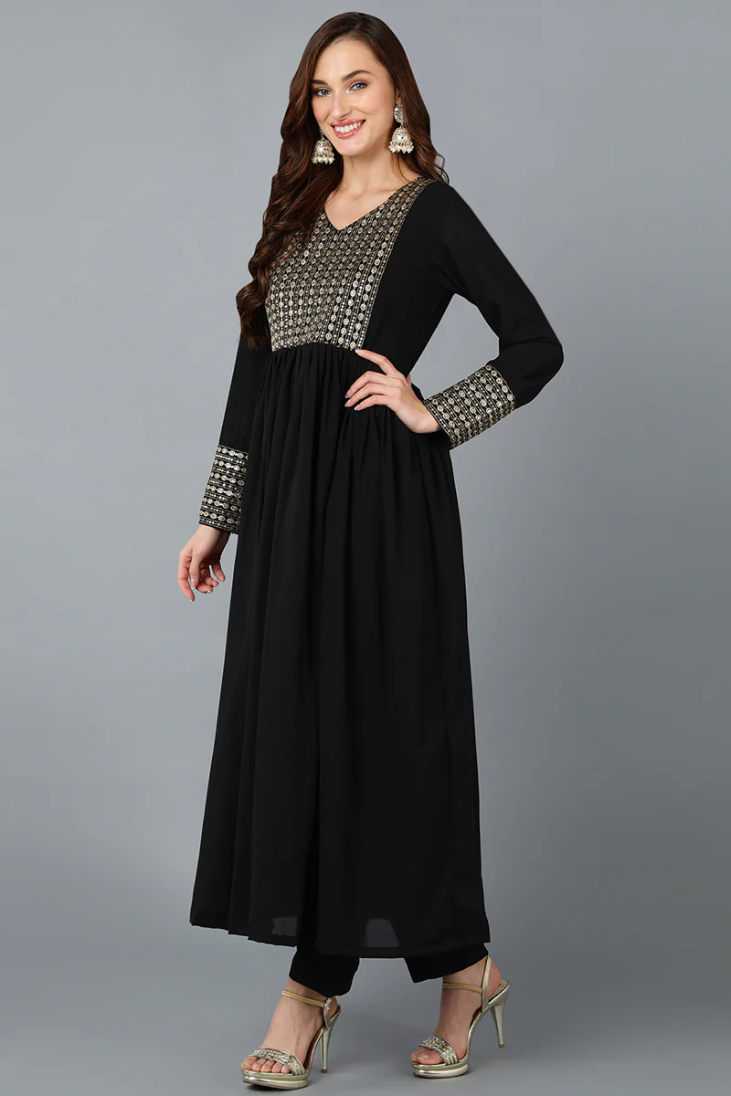 Black Georgette Sequinned Flared Suit Set PKSKD1851