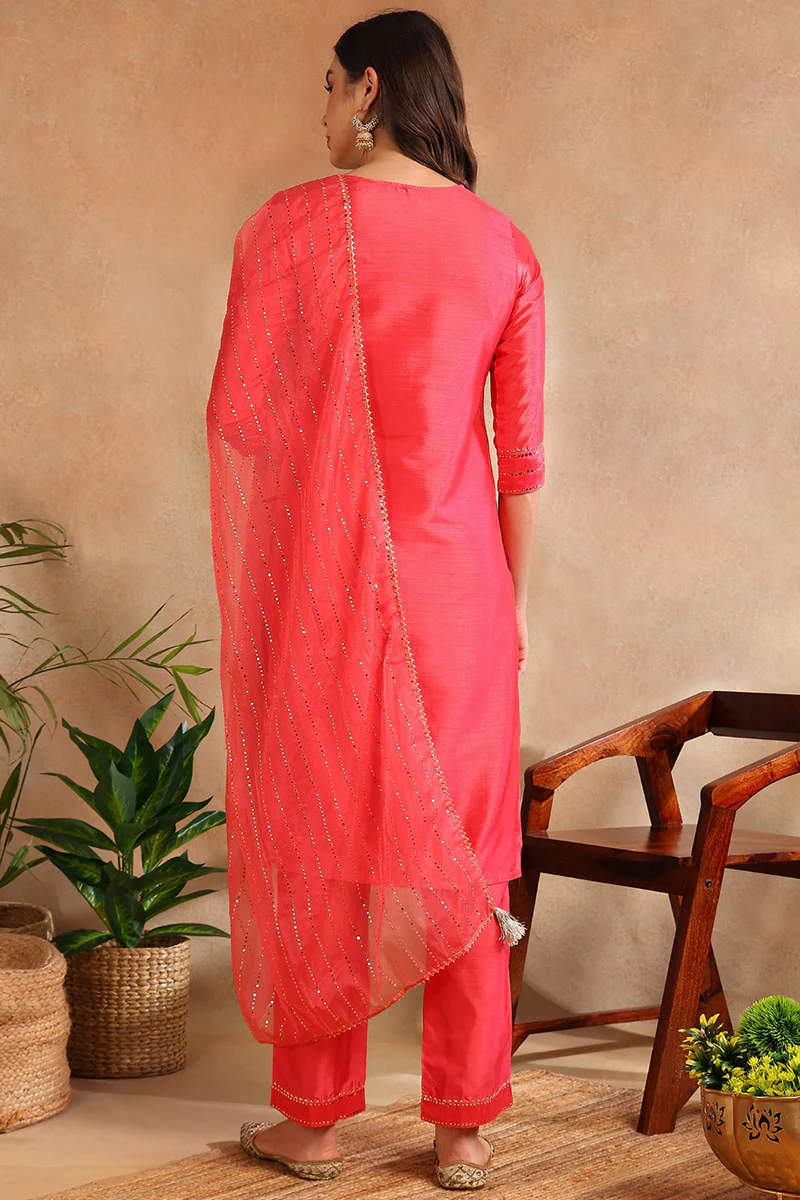 Fuchsia Poly Chanderi Solid Straight Suit Set PKSKD1089