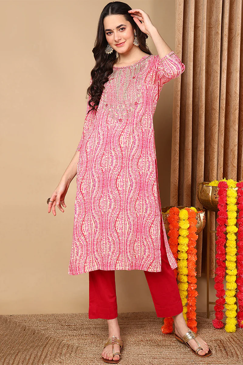 Pink Viscose Rayon Abstract Printed Straight Kurta VCK9620