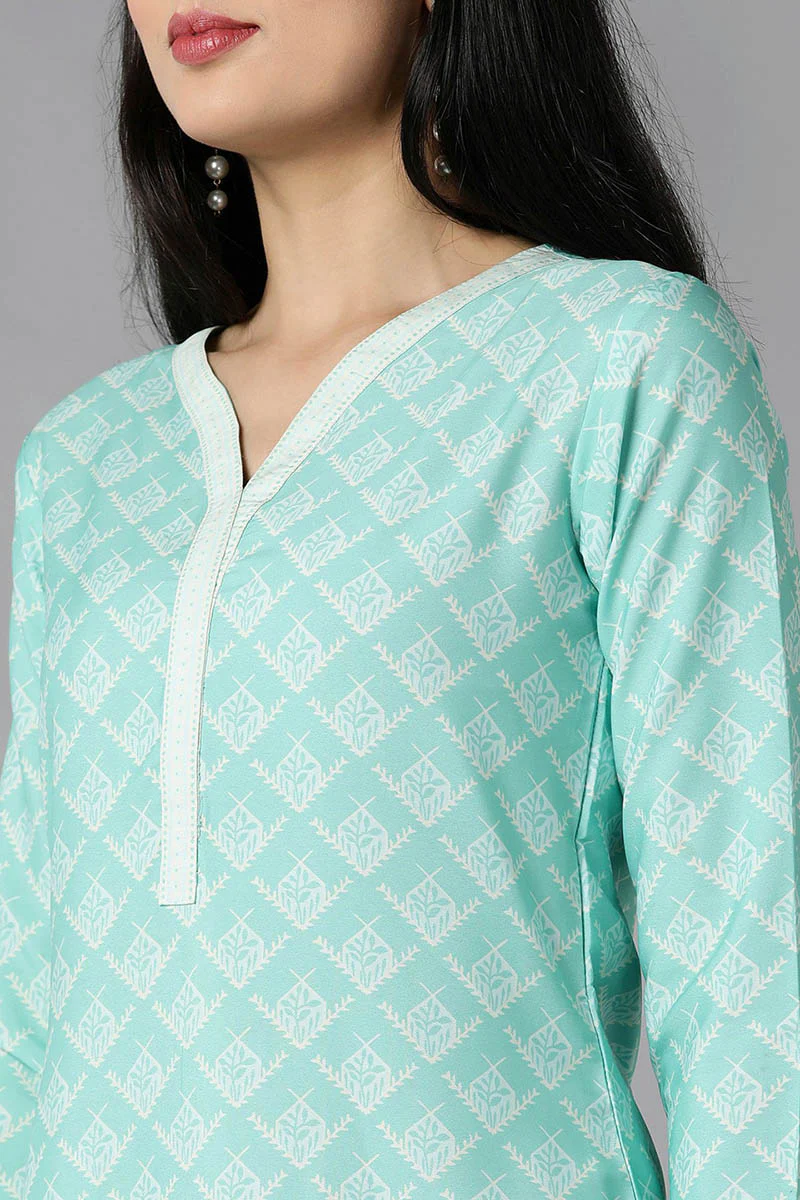 Sea Green Ethnic Motifs Printed Regular Kurta with Palazzos With Dupatta Set